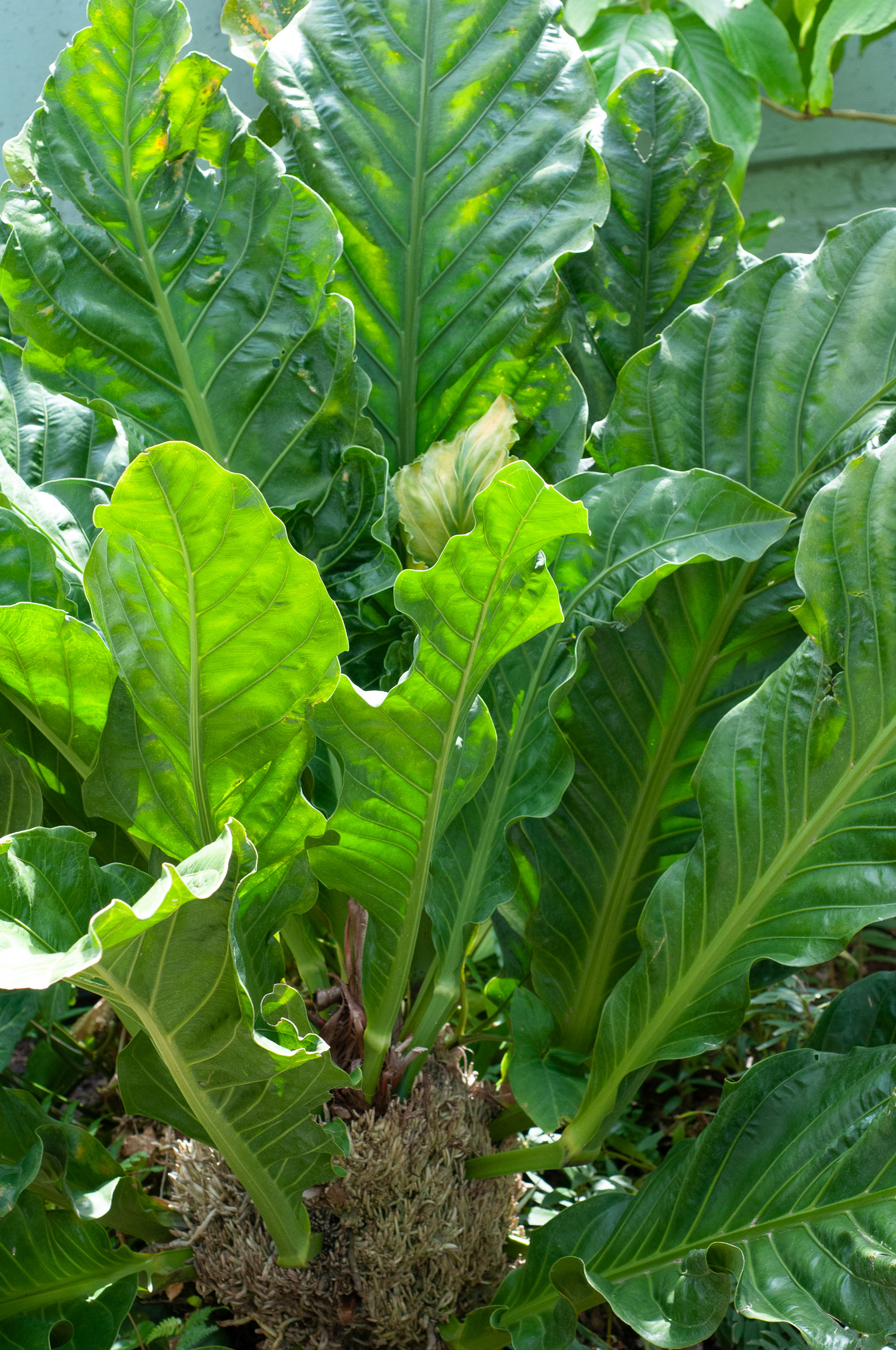 2. Inflorescence: The flowers of Anthurium hookeri are somewhat unusual compared to typical Anthuriums. They have a spadix, which is the central, upright, spike-like structure, and a spathe, which is a modified leaf that wraps around the spadix. The spathe of A. hookeri is often green and can have a waxy appearance.