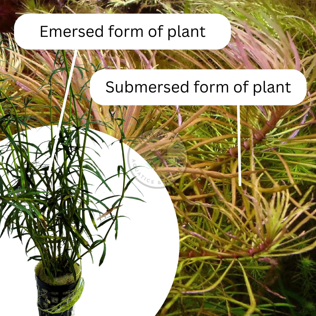 “Dassen” is specifically noted for its deep purple coloration, which sets it apart from the more commonly found green varieties of Pogostemon stellatus. Its leaves are typically narrow and lanceolate, arranged in whorls along the stem. Under appropriate lighting conditions, this plant can develop intense purple hues, particularly in the presence of sufficient nutrients and carbon dioxide (CO2) supplementation.